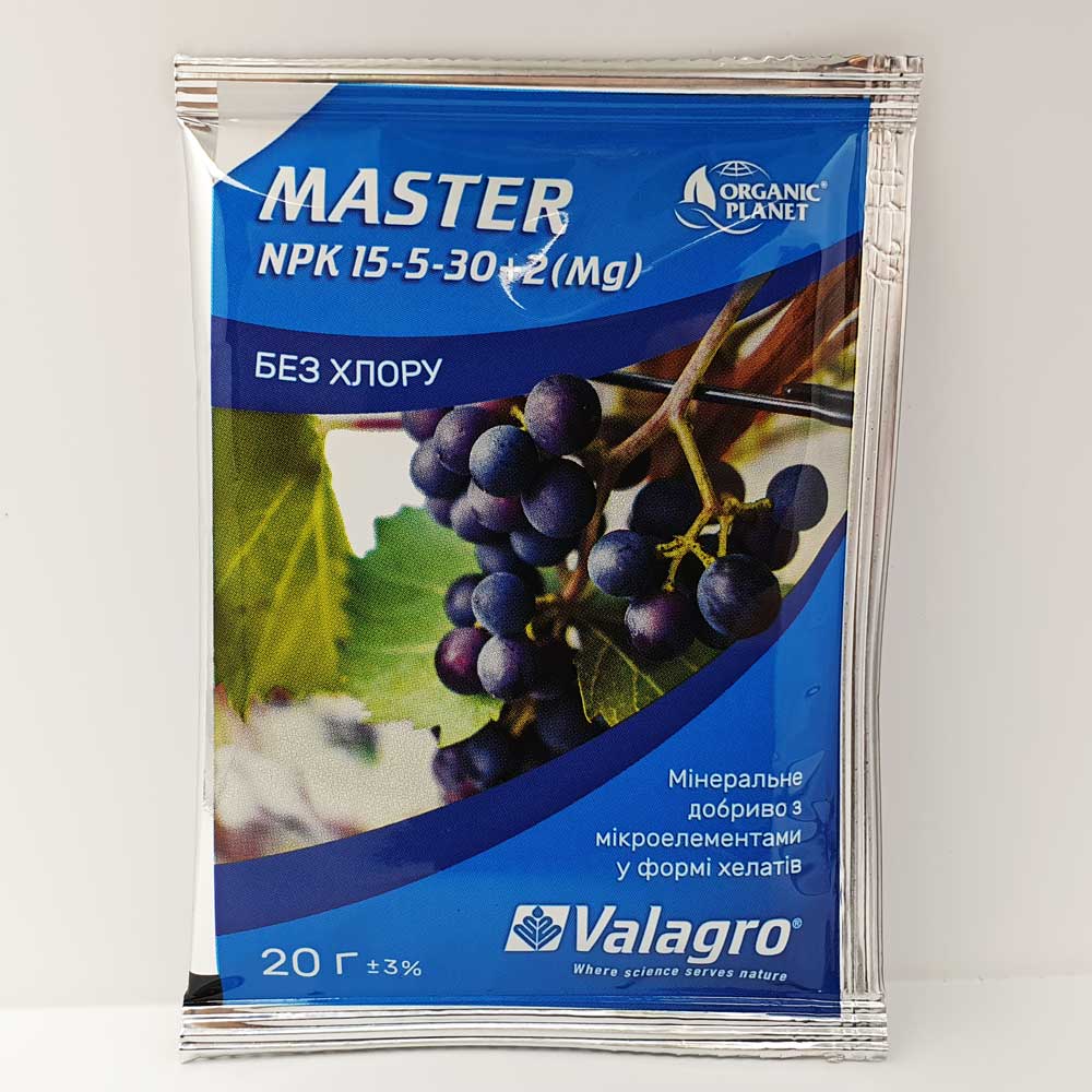 Master 15-5-30+2Mg+ME 20 грамВОДОРОЗЧИННЕ КОМПЛЕКСНЕ ДОБРИВО З МІКРОЕЛЕМЕНТАМИ У ФОРМІ ХЕЛАТІВКомпле..