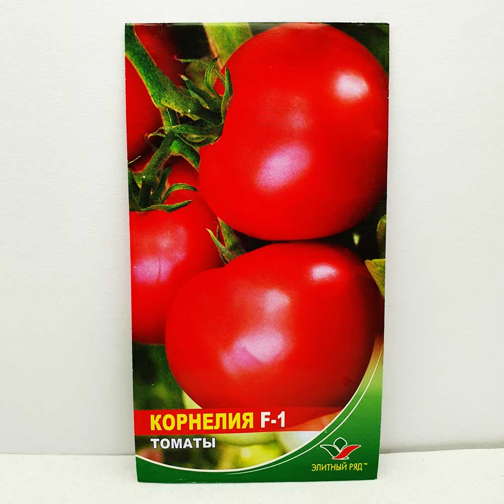 Томат Корнелія F1Термін дозрівання: 100 – 105 днівМаса плодів: 250 грамФорма плодів: округлаКолір: ч..