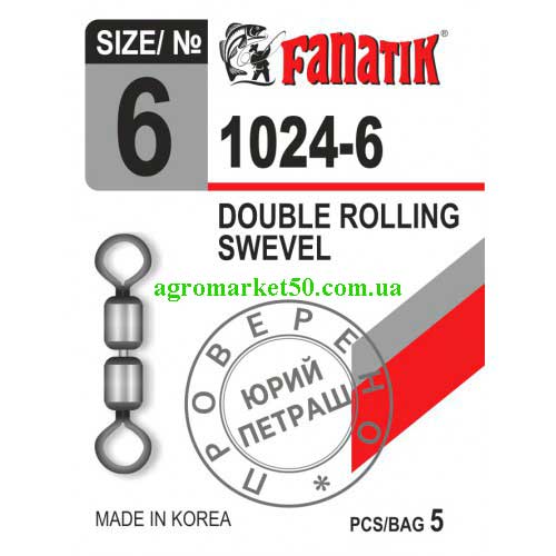 Набор двойных вертлюгов для рыбалки FANATIK 1024-6 (5 шт) – 12 шт, 1024-10 (5 шт) – 6 шт..