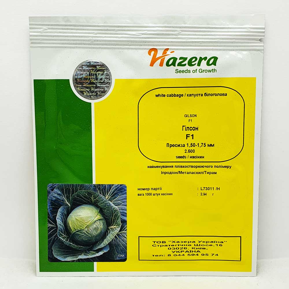 Капуста белокочанная Гилсон F1Вегетационный период 125-130 дней от высадки рассадыМасса головки 2,0-..