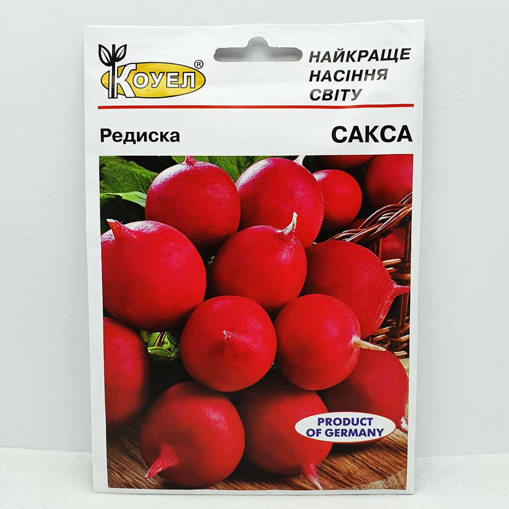 Редис Сакса - известный, популярный ранний сорт редиса (22 - 25 дней). Корнеплод округлой формы, ярк..