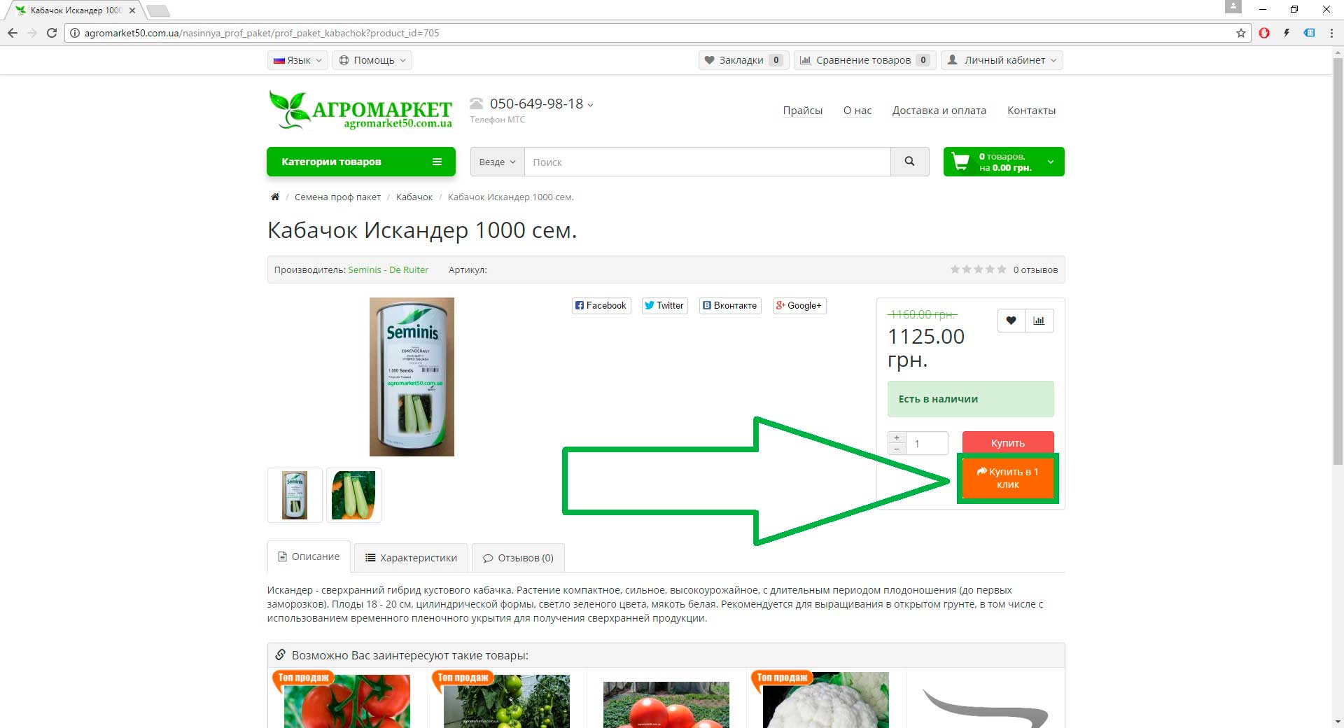 1. Выберите товар который Вы хотите купить и нажмите на кнопку «Купить в 1 клик».