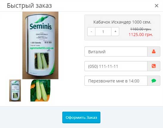 Для того чтобы быстро заказать один товар можно воспользоваться кнопкой «Купить в 1 клик». (Пожалуйста имейте в виду - минимальная сумма заказа составляет 200 грн).