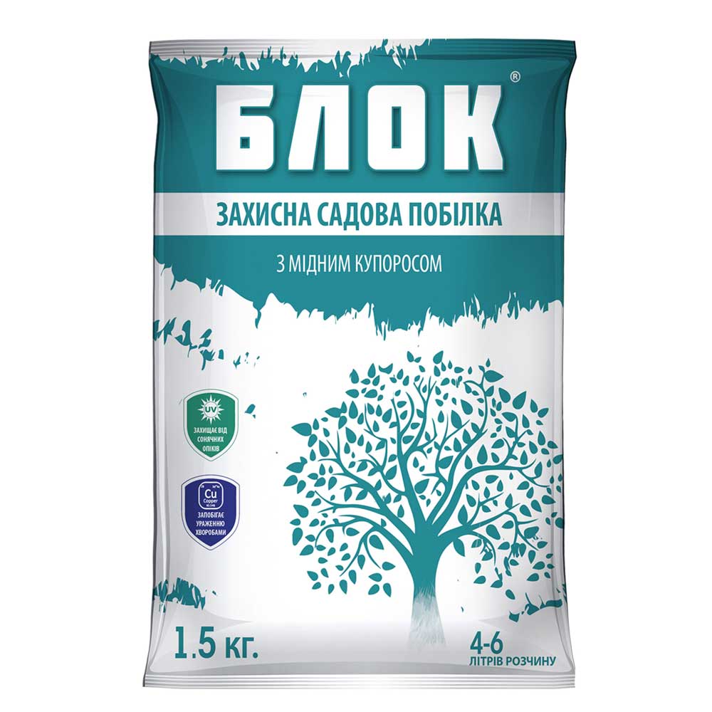 БЛОК побілка захисна садова з мідним купоросом — вміст сульфату міді забезпечує профілактику грибков..