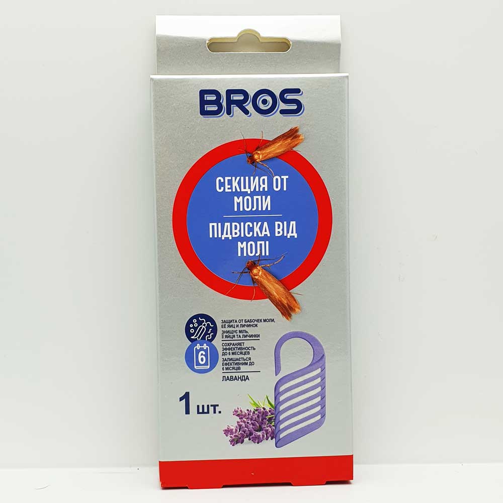 Підвіска від молі Bros ефективно діє в шафах, гардеробних та інших місця зберігання одягу. Інсектици..
